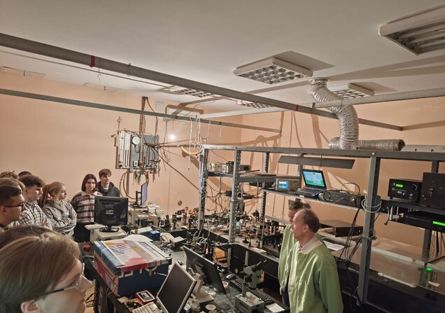 Під час візиту студенти ознайомилися з роботою низки наукових підрозділів Інституту. Лабораторії відділу фізики біологічних систем представила Оленчук Марина Володимирівна. Про роботу лазерного фемтосекундного комплексу та експерименти, які виконуються з використанням його обладнання, розповів Дмитрук Андрій Миколайович.